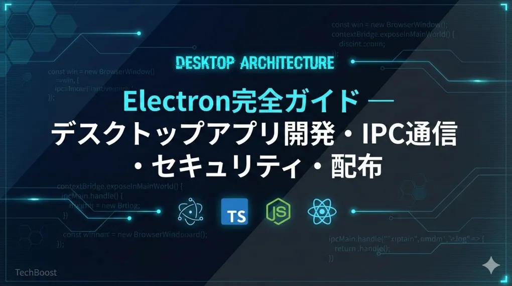 本記事では、Electronの基礎から本番運用まで、TypeScriptとReactを使った実践的なコード例とともに徹底解説する。IPC通信の設計・セキュリティのベストプラクティス・electron-builderによるクロスプラットフォームビルド・コード署名まで、2026年の開発現場で通用する知識を網羅する。