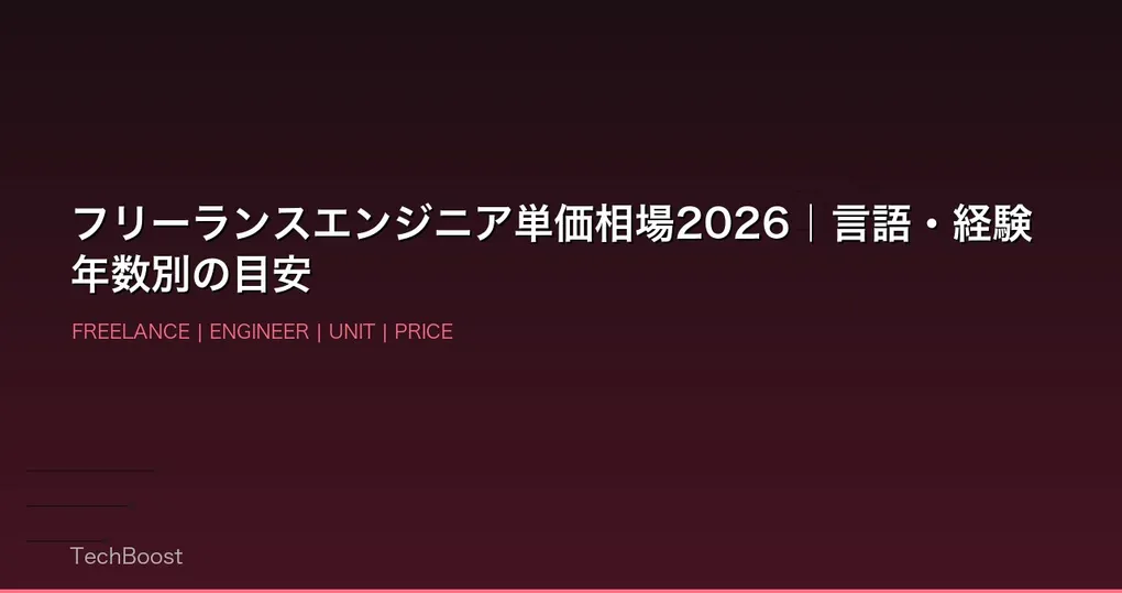 この記事では、2026年3月時点のフリーランスエンジニア単価相場を、言語・フレームワーク・経験年数・案件種別ごとに具体的な数字で整理しました。単なる相場表だけでなく、なぜその単価なのか、どうすれば上げられるのかまで踏み込んで解説します。