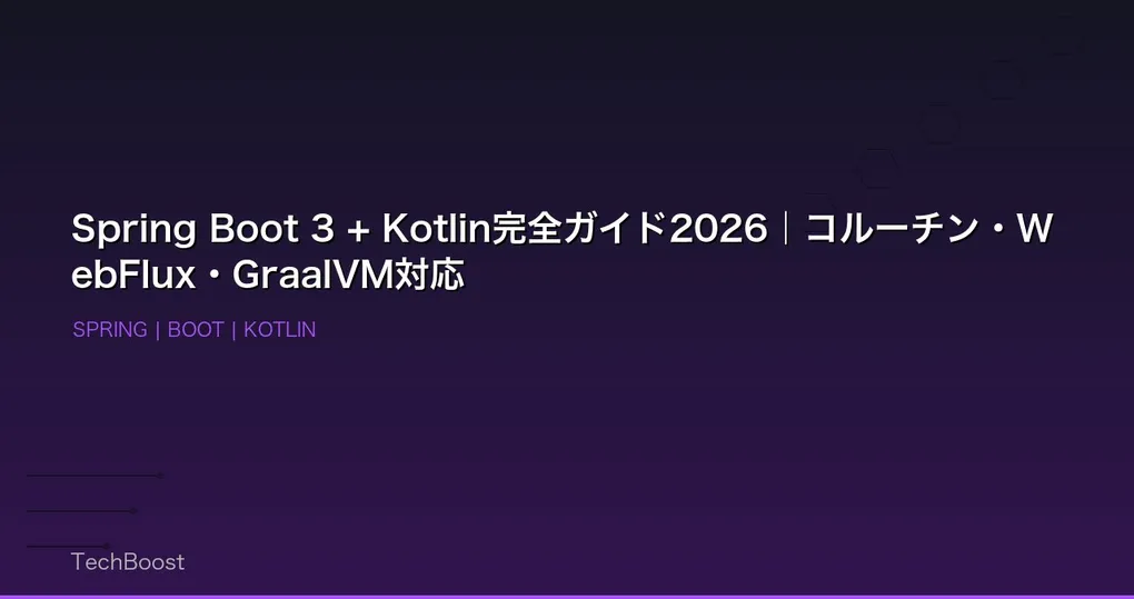 Spring Boot 3はKotlinをファーストクラスサポートしています。Kotlinの簡潔な構文、null安全性、コルーチンと組み合わせることで、Javaよりも少ないコードで安全なアプリケーションを構築できます。