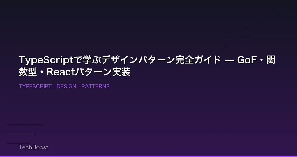 ソフトウェア開発において「デザインパターン」は、過去の優秀なエンジニアたちが蓄積した設計の知恵を体系化したものです。TypeScriptはその静的型システムにより、これらのパターンをより安全かつ明確に実装できます。本記事では GoF の23パターンを中心に、React パターン、関数型パターンまで TypeScript の型システムをフル活用した実装例を紹介します。